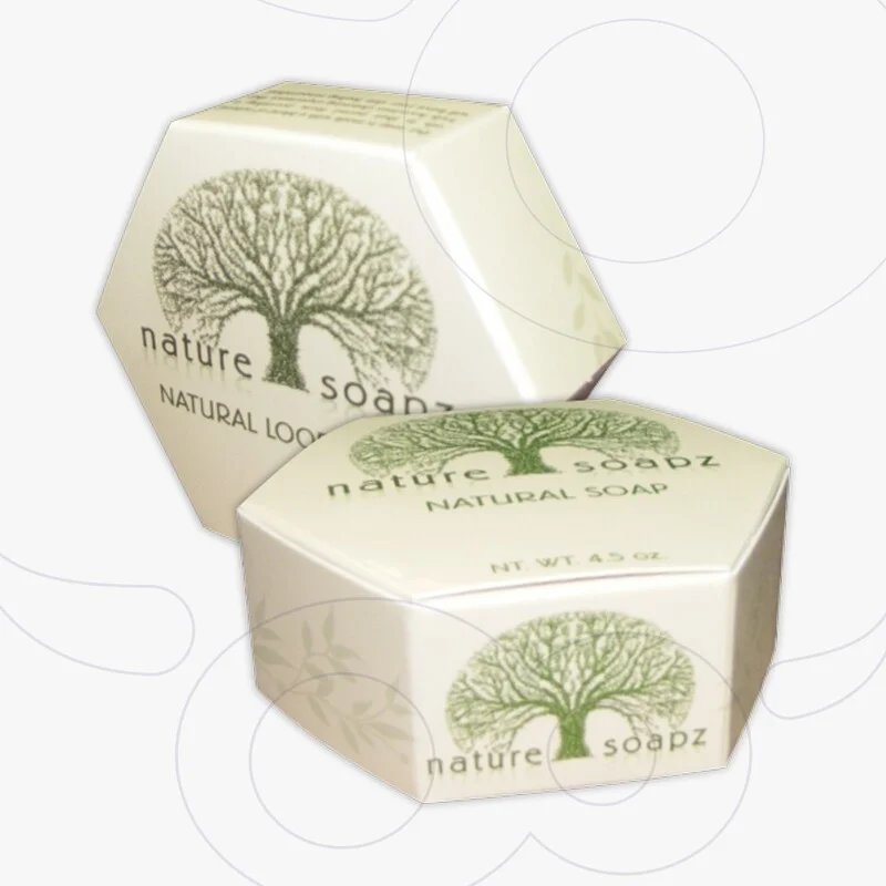 Premium finishes including embossing, debossing, foil stamping and spot UV help to highlight branding elements. Hexagon soap boxes with logo printing ensures the consistency of branding with a professional approach across all product lines.