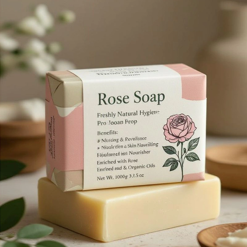 High-quality organic soap packaging with personalized designs to enhance brand appeal. Durable materials, brand logo, and other elements make them competitive.