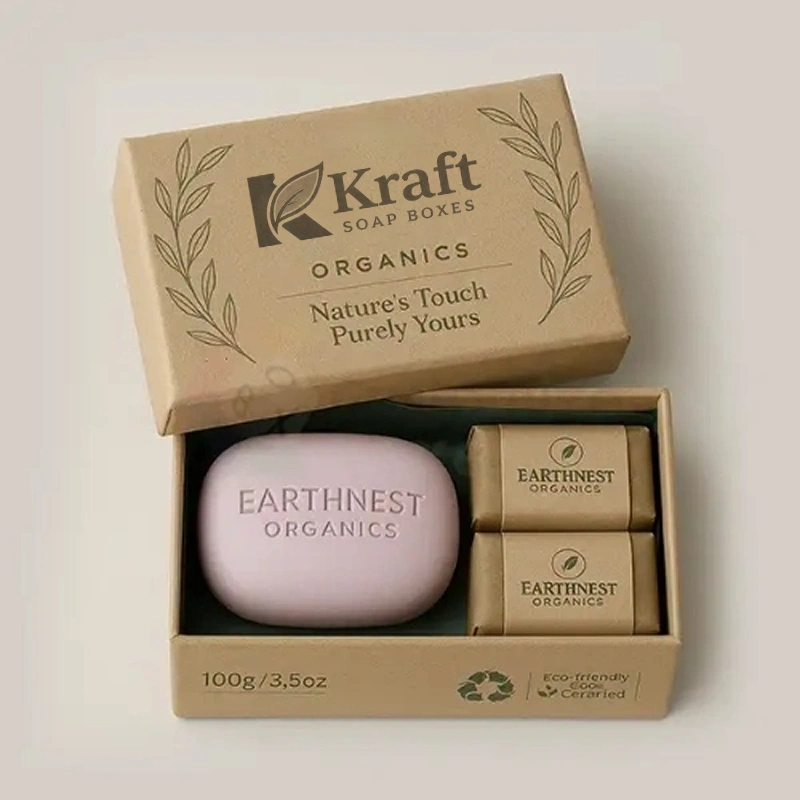 Kraft Soap Boxes use strong, food-safe, eco-conscious and strong materials that protect soaps from contamination, physical damage, and heat.