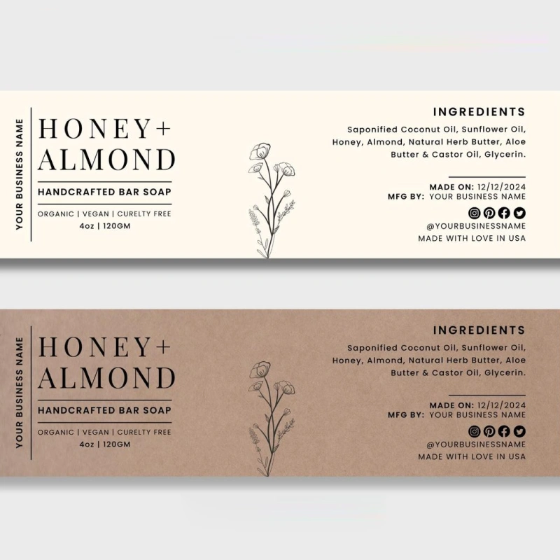 Whether you’re selling handmade soap or bath bars, Kraft Soap Boxes offer moisture-resistant soap labels with long-lasting adhesive.